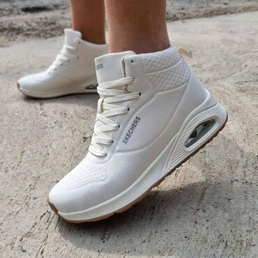 Skechers patike sa vazdušnim jastučićem i šarenim printom - Model: niske lifestyle patike sa pertlama - Boje: crna i bela varijanta - Đon: zadebljan gumeni đon sa prozirnim vazdušnim umetkom u pet...