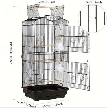 Prostran dizajn: Dimenzije su 457 x 355 x 925 mm (17,95 x 13,98 x 36,42 inča); sa otvorenim vrhom, visina dostiže 1040 mm (40,94 inča). Razmak između žica od 1 cm je idealan za kanarince, kokatile, ljubavne ptice i druge male do srednje ptice.