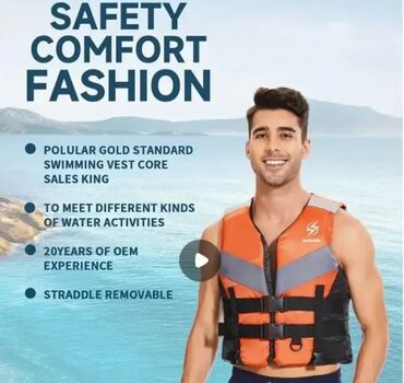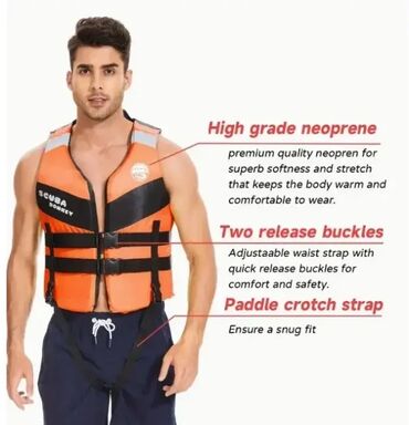 L velicina - 60 do 75 kg, visina recimo 160-175cm, za obim grudi do 100cmPunjen je penom (nije stiropor)Trake izmeđi nogu služe da prsluk ne ode gore ukoliko skočite u vodu sa veće visine. POGLEDAJTE OSTALE NASE OGLASE