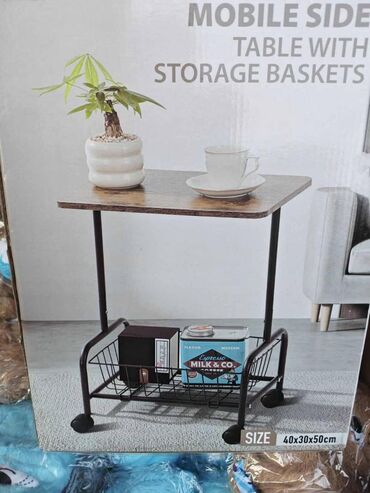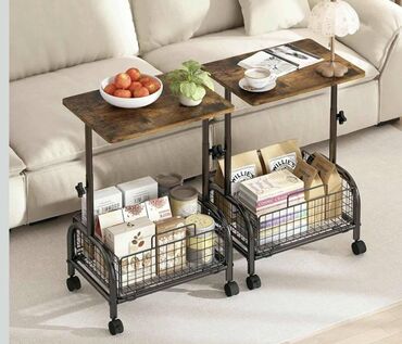 Pomoćni stočić sa točkićima i korpom za odlaganje
