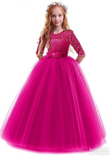 NOVO - Svecana haljina haljine za devojcice decu - za rođendan, krštenje, svadbu. Haljina je usko ukrojena tako da bi bilo dobro da izmerite dete pre porudžbine. Haljina ima 4 suknje. Pozadi ima dve trake koje se vezuju u mašnu. Za uzrast 4 do 5 godina: obim grudi oko 58 cm, struk 55cm (pozadi ima traku za stezanje struka), duzina 94cm. Sva garderoba u našoj ponudi je nova.