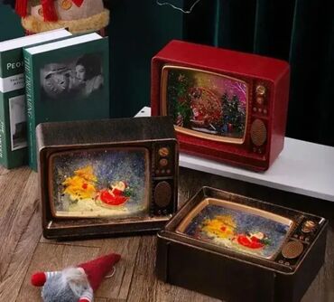Ovi jedinstveni novogodišnji ukrasi u vintage stilu su televizori koji prikazuju scene sa Deda Mrazom u elegantnoj atmosferi iz prošlih vremena. 🎅❄️
