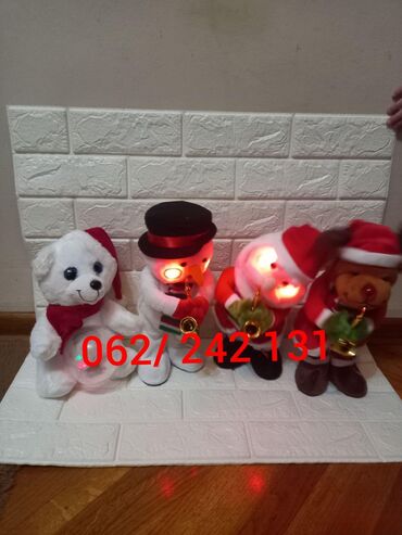 Meda je dostupan u dve boje: beloj i braon. Visina figura je oko 35 cm. Pevaju i sviraju poznate novogodišnje pesme.