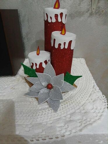 - visine sveća: mala ~12–14 cm, srednja ~18–20 cm, velika ~24–26 cm