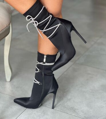 Ženske lakovane čizme na visoku štiklu - Model: špic čarapa-čizme sa tankom visokom štiklom (stiletto) - Visina: dve varijante – do članka i do kolena - Materijal: sjajni lak (patent) sa glatkom z...