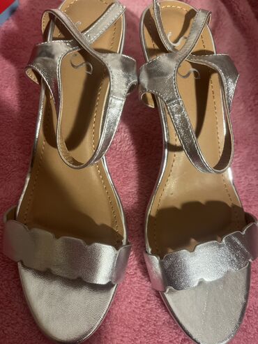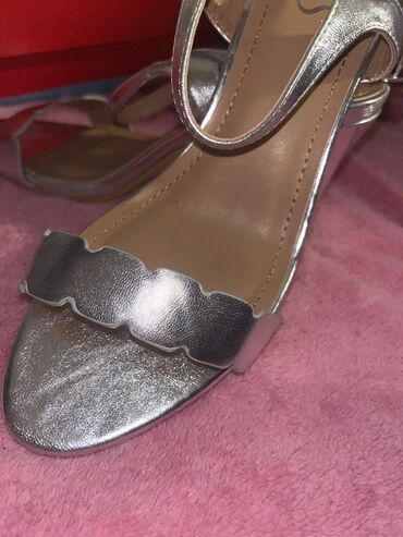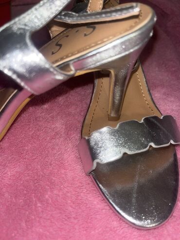 Eko kožaŽenske sandale sa visokom potpeticom u srebrnoj boji, idealne za svečane prilike. Karakteriše ih elegantan dizajn sa kaišem preko prstiju koji ima talasastu ivicu i tankim kaišem oko članka. Potpetica je tanka i diskretna, pružajući stabilnost i sofisticiran izgled. Ove sandale su pogodne za večernje izlaske, proslave ili bilo koju priliku gde želite da istaknete svoj stil.