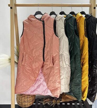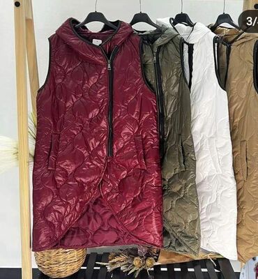 Dugačak ženski prsluk sa kapuljačom – dvostrano nošenje - Model: prošiveni, topli, lagano punjen - Dužina: ispod kolena, produžen zadnji deo - Kapuljača: duboka, fiksna - Kopčanje: kvalitetan rajs...