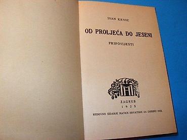 Od proljeća do jeseni ivan krnic zagreb 1925. matica hrvatska tvrd povez, strana 102. stanje vrlo dobro.