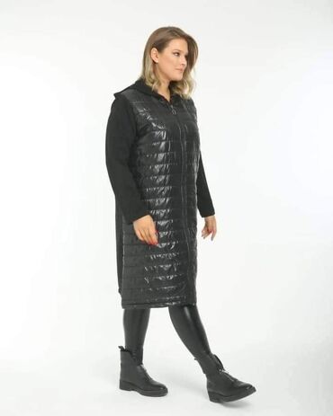 Ženska duga prošivena prsluk-jakna bez rukava, crne boje. - Dužina do ispod kolena, moderan puffer kroj - Topla kapuljača sa obodom od veštačkog krzna - Prednji rajsferšlus celom dužinom + dodatni...