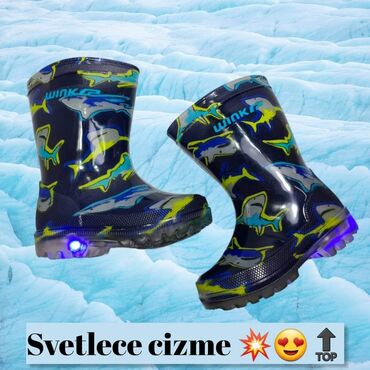 Odlican model svetlecih gumenih cizmica koje svetle na pritisak stopala Cizmice sa tekstilnim uloskom, bez postave