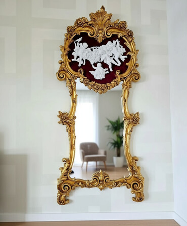 Ručno ukrašeno zidno ogledalo sa bogatom baroknom/rokoko ramom u