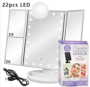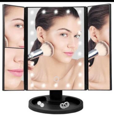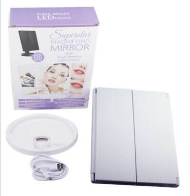 Profesionalno LED ogledalo za sminkuVolite da se sminkate i sredjujete, onda je ovo trostruko LED ogledalo prava stvar za vas. Pritisnite prekidac osetljiv na dodir sa prednje strane ogledala i svetlo ce se upaliti. Mozete i da prilagodite nivo LED osvetljenja u skladu sa vasim potrebama. Previse vam je tamno u prostoriji i ne mozete lepo da nanesete sminku, LED ogledalo za sminkanje ravnomerno ce osvetliti svaki centimetar vaseg lica, tako da ce svaki detalj sminke biti kako treba i izgledacete besprekorno. • Specifikacija: Boja: bela / crna / žuta • Materijal: ABS LED svetla: 22pcs LED • Dimenzija srednjeg ogledala: 7×9.2inca• Dimenzija bočnog ogledala: 3.5×9.2 inča•