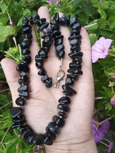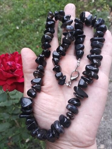 Ogrlica od krupnog OPSIDIJANA, poludragog kamena, vulkansko staklo.