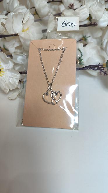 Ogrlica sa privjeskom u obliku srca, ukrašenim sitnim, svetlucavim kamenčićima. Lanac je tamno metalne boje (gunmetal), gušće pleten, sa klasičnom karabin kopčom. Ima produžni lančić za lako podeša...
