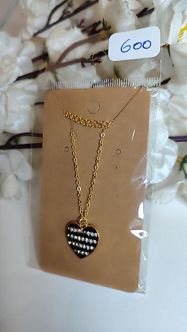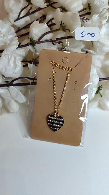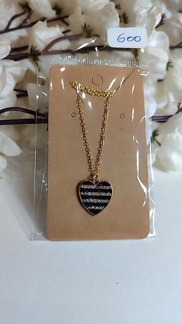 - Privezak u obliku srca, crna podloga sa horizontalnim redovima sitnih, blistavih kamenčića