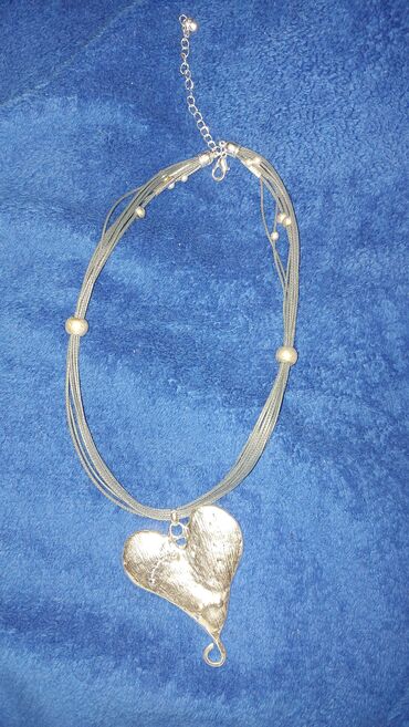 Masivna ženska ogrlica sa ukrštenim lancima u dve boje. Dizajn čine dva široka lanca: jedan u zlatnoj, drugi u srebrnoj nijansi, položeni jedan preko drugog duž cele dužine. Centralni deo je naglaš...