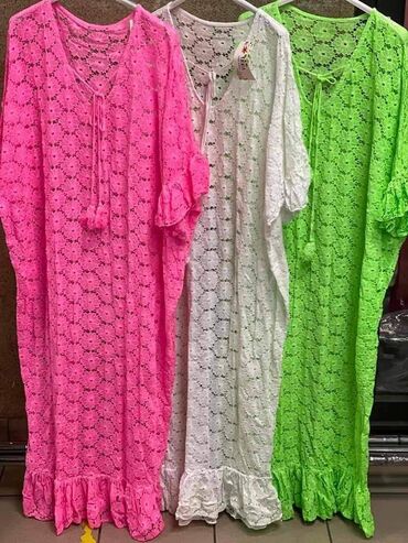 Ženski dvodelni kupaći kostim - Boja: jarko pink sa neonsko‑zelenim detaljima - Gornji deo: trokutasti kroj sa ukrštenim prednjim delom; široke, naborane naramenice u neonsko‑zelenoj boji - Donji ...