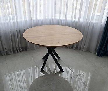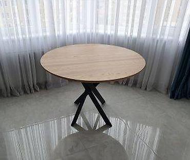 Drveni trpezarijski sto, masivna izrada sa dve centralne noge i ukrasno profilisanim osloncima. Gornja ploča je ovalnog/oblo-kvadratnog oblika sa blago profilisanim ivicama. Tamni ton drveta (mahag...