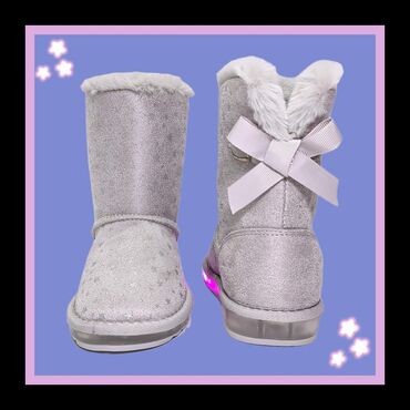 Predivne izuzetno lagane svetlece cizmice Nalicje je u sivoj boji sa srebrnim zvezdicama. Skroz su postavljene toplim krznom i svetle na pritisak stopala