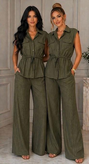 • Komplet široke pantalone visokog struka na lastiz i bocnim dzepovima
