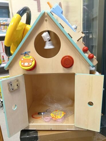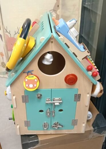 ⚡ Drvena Montessori kućica za aktivnosti, poznata i kao "busy board" ili "activity house". ⚡Dizajnirana je da podstakne razvoj finih motoričkih veština, rešavanje problema i senzornu stimulaciju kod dece.