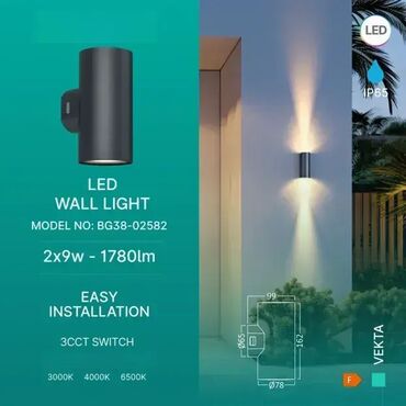 **Opšte karakteristike** Model br. BG38-02582Glavna grupaOutdoor LightingPod grupaLED Wall LightTipWallBojaGreyRasipanje svetlostiDirectionalDimabilnoNot-DimmableIzvor svetlaLEDGarancija2 yearsKlasaClass IIIPIP65IKIK08**Karakteristike proizvoda** Snaga2×9 wTemperatura boje3IN1Količina lumena1780 lmIndeks prikaza boje (CRI)>80Nivo energetske efikasnostiFUgao rasipanja svetlosti38° DegreesKategorija boje3IN1**Električne karakteristike** Lifetime20000 hNapon220-240VFaktor snage>0,5MaterijalPCRadna temperatura-20 C+40 CFrekvencija50-60 Hz**Dimenzije i težina artikla** Prečnik78 mmŠirina pakovanja99 mmVisina pakovanja162 mmTežina295 gr**Informacije o pakovanju** Neto težina2,95 kgsBruto težina4,20 kgsKomada u kutiji10 pcsDužina560 mmŠirina195 mmVisina190 mmBarkod