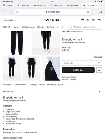 Original ARMANI pantalone 33 100% cotton Polustruk 45cm , duzina 111cm , nogqvica 18cm TOP