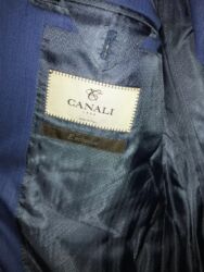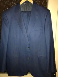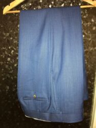Svetlosivi muški komplet – prsluk i pantalone u istoj tkanini sa diskretnim karo šarom. - Veličina: 38 - Prsluk: jednoredni, pet dugmadi, dva spoljašnja džepa i ukrasni lančić; V-izrez, klasiča...