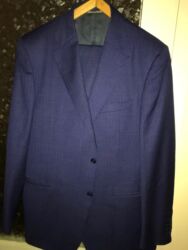 Svetlosivi muški komplet – prsluk i pantalone u istoj tkanini sa diskretnim karo šarom. - Veličina: 38 - Prsluk: jednoredni, pet dugmadi, dva spoljašnja džepa i ukrasni lančić; V-izrez, klasiča...