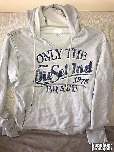 Nike muška dukserica sa rajsferšlusom (model code sa etikete: CU) - Boja: gornji deo tamnosiva/ugljen siva, donji deo svetlosiva; tanki beli i bež prugasti detalj preko grudi - Logo: beli Nike Swoo...