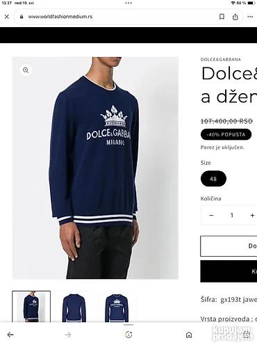 Original Dolce &Gabbana duks M 100% cotton Ramena 45cm, duzina 75cm, struk 55cm, rukav 66cm TOP Made in Italy Dolce &Gabbana majica S 98% cotton 2% elastin Ramena 42cm , duzina 70cm Crna boja...