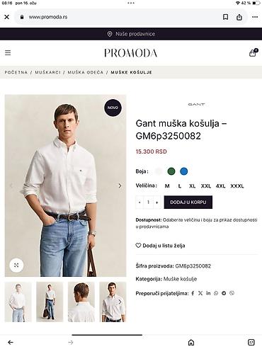 Original Gant Kosulja M KAO NOVA 100% cotton Ramena 45cm, duzina