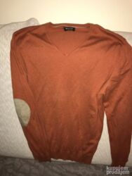 Muški džemperi – 2 kom - Brendovi: H&M (narandžasti), Zara Man (tamno plavi). - Kroj: klasičan okrugli izrez, dugi rukavi, rebrani rubovi na okovratniku, manžetnama i porubu. - Materijal: pletena ...