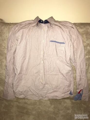 Muška košulja M, 100% pamuk. Nošena je, ali očuvana. Uživo je nešto svetlija nego na slikama. Naznačena veličina M, možda odgovara i za L. Pratite dimenzije: ramena: 45 cm od pazuha do pazuha: 53 c...