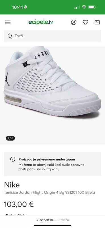 UpotrebljenоOriginal Nike JORDAN Flight Origin 4 patike broj 37,5. Dužina unutrašnjeg gazišta 23,5 cm.