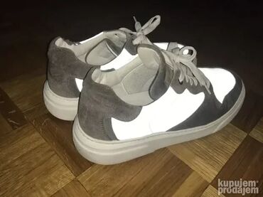 Patike – dva modela 1) Bele sportske patike Reebok/Jomix - Boja: bela - Gornjište: mrežasti tekstil sa ojačanjima i vezivanjem na pertle - Jezik sa Reebok logotipom; bočne strane sa Reebok oznakom...