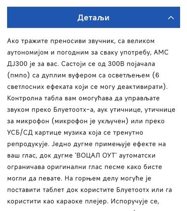 Pravi profesionalni zvuk koji dominira u svakom smislu,ima i za karaoke sistem varijantu,cak i stalak za pc tablet ili za smart telefon na vrhu zvucnika.