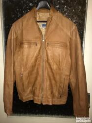 Kožna jakna Prava koža, S (EU 48), Esprit, bоја - Tamnoplava