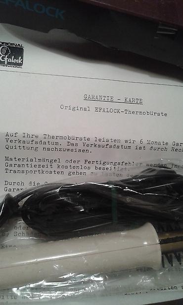 Jako kvalitetna nemacka termo cetka,donesena iz Nemacke,neotpakovana,sto se i vidi na slikama,nova.Uz nju ide uputstvo na nemackom,dva rezervna ceslja i naravno originalna kutija.Idealna za susenje kose i oblikovanje,uvijanje.Cena daleko niza od kupovne,fiksna,a i s obzirom da je nova povoljna je.
