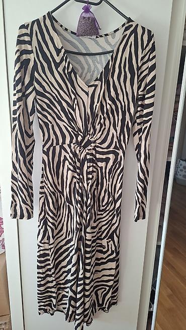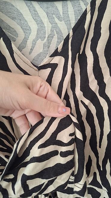 - Dizajn: Crno-bež zebra dezen, efektno drapiranje i čvor u struku koji naglašava siluetu