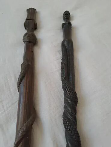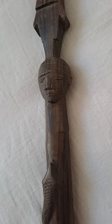 Pokupiti na licu mestaOstao samo jedan i to svetliji. Stap je od kvalitetnog drveta, plemenski rad. Duzune od prilike 70cm.