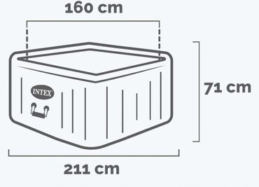 Ovaj SPA proizvod na naduvavanje kombinuje praktičnost i originalnost zahvaljujući svom kvadratnom obliku i novom privlačnom prugastom dezenu. INTEX Chevron Deluxe™ SPA namenjen za 4 osobe nudi 140 moćnih mlaznica za umirujuću i okrepljujuću masažu. Ova SPA linija ima dvostruko integrisane sisteme za održavanje vode, ugrađeni FastFill™ sistem za naduvavanje/izduvavanje, Fiber-Tech™ tehnologiju za vrhunsku izdržljivost i bežičnu kontrolnu tablu sa aplikacijom za upravljanje sa mobilniih uređaja