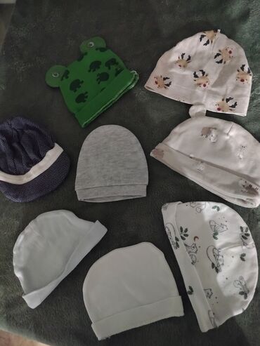 - Više pamučnih kapica za bebe, različitih modela i boja: