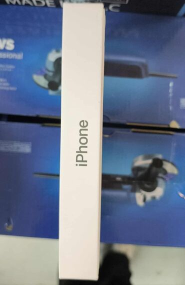 Moderan pametni telefon elegantnog dizajna u sivoj boji, sa ravnim ivicama i zaobljenim uglovima. Na zadnjoj strani nalazi se prepoznatljiv Apple logo i sistem sa tri kamere, idealan za snimanje fotografija i video zapisa visokog kvaliteta. Prednji deo telefona prikazuje svetao ekran sa ikonama aplikacija u karakterističnom rasporedu. Uz telefon dolazi originalna bela kutija sa natpisom „iPhone“, što ukazuje na autentičnost uređaja. Ovaj model nudi napredne funkcije i intuitivno korisničko iskustvo, pogodno za svakodnevnu upotrebu, komunikaciju, zabavu i produktivnost.