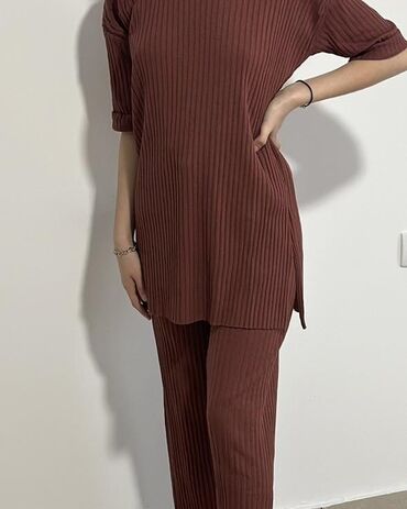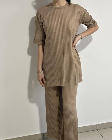 Ženski pleteni komplet – dukserica sa rajsferšlusom i široke pantalone - Dvončlani set od rebrastog pletiva: kratka dukserica sa kapuljačom i rajsferšlusom + pantalone ravnog, širokog kroja. - Vis...2 500 RSD