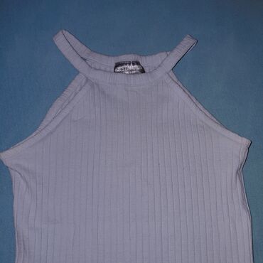 Ženski rebrasti top sa halter izrezom. Izrađen je od mešavine vune i akrila, što ga čini prijatnim za nošenje. Gornji deo ima nabore koji ističu formu, dok se naramenice ukrštaju na leđima. Neutral...