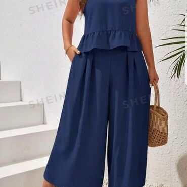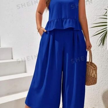 Pantalone + Prelepa bluza,(poklon)savrsena za leto. Ima lastis oko vrata, pa se moze spustiti na ramena i nositi i sa golim ramenima. Pise vel. 5...otprilike odgovara jacem M., ali se vodite dimenz...1 300 RSD