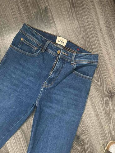 Ženske džins pantalone – širok/kombinezonski kroj - Materijal: lagan teksas (denim), prijatan za toplo vreme - Boja: srednje plava sa blagim ispranim efektom - Visina struka: srednji struk - Kroj ...