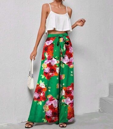 Akcija 2 pantalone po ceni jedne! 2 kom pantalona za 2200din✅ ✅L-4xl ✅Pamuk ✅Ženske široke pantalone – model sa visokim strukom i vezicom
