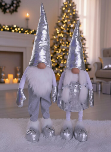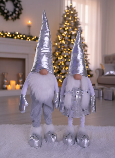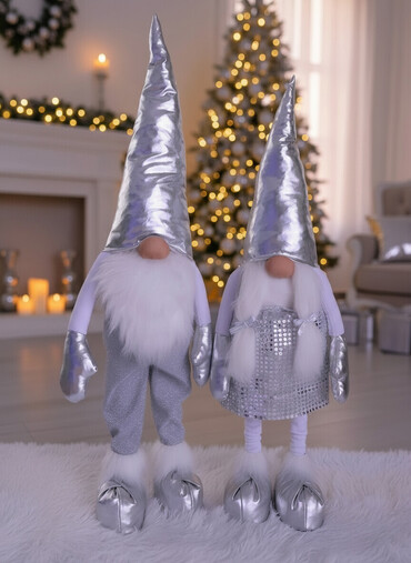 Dekorativne figure – par novogodišnjih patuljaka u srebrno-beloj kombinaciji.